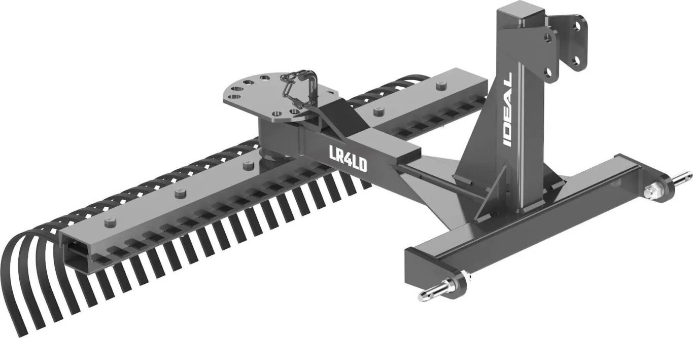 A versatile and easy to use rake, the Ideal Farm Equipment Landscape Rake makes raking, smoothing and contouring gravel or soil easy. The curved C-Tines are shallow enough to protect your field, but can be angled to move items such as rocks easily. Order an optional wheel kit (LRWKID) to set your depth and improve maneuverability.