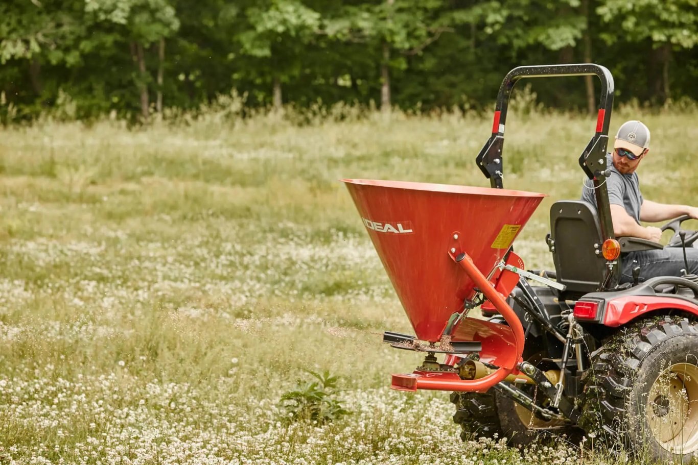 Ideal's durable, easy to pull spreaders will send seed, feed, fertilizer and/or other free-flowing material up to 60 feet across your garden or field. You can load up to 850 lbs. in the Fertilizer Spreader or 500 lbs. in the Poly Fertilizer Spreader.