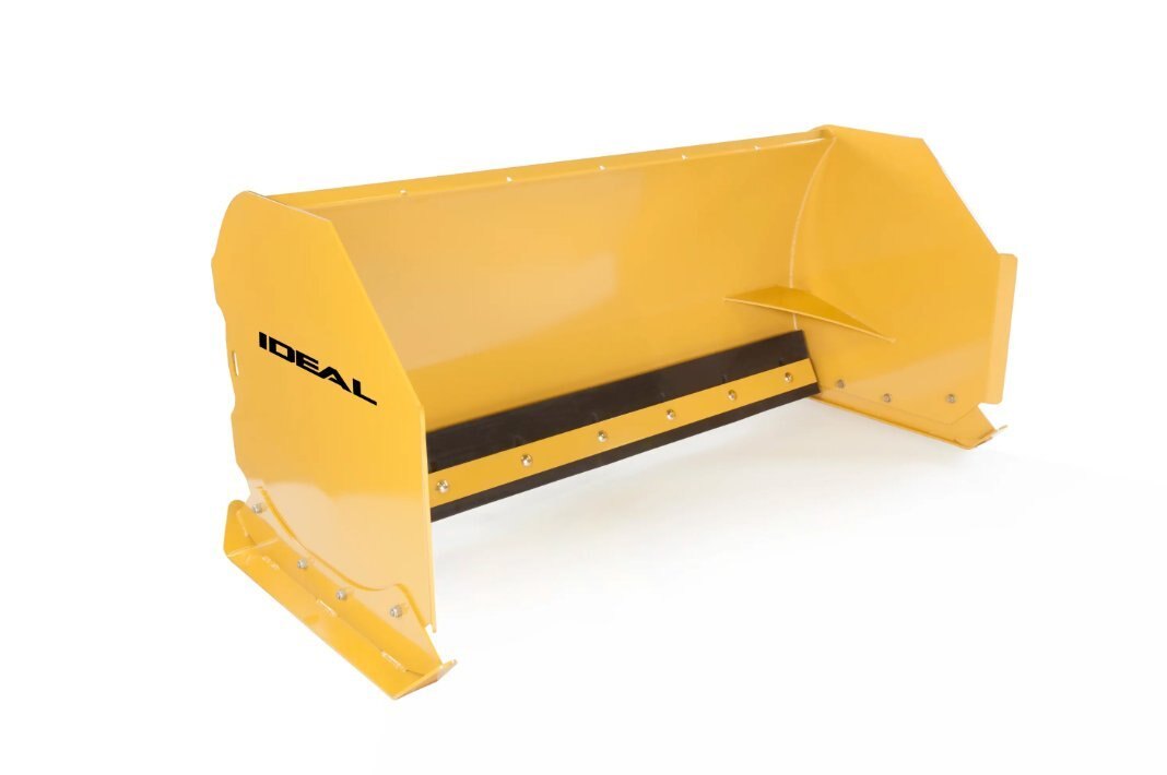 Ideal's Front Attach Snow Pusher clears out an area faster than a snow plow. This implement efficiently and evenly pushes snow straight ahead in any environment without missing a spot. There's no need to worry about damaging the pavement with the pusher's 8" replaceable and adjustable rubber cutting edge guards. This quick-attach implement works great on tractors with compatible front-end loaders. Can also be used with skid steer and compact track loaders. Available in either 6', 7', or 8' models and features Ideal's long-lasting corrosion-resistant powder coat finish.