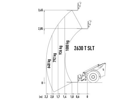 - (F) Swivelling point, telescopic arm retracted: 3,720 mm