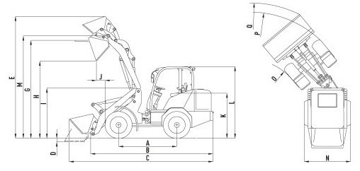 - (Q) Outer radius with standard bucket: 3,175 mm